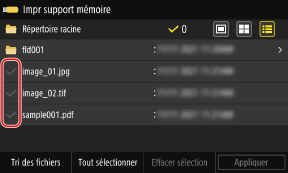 * Seuls les fichiers du même dossier peuvent être sélectionnés en même temps. Si vous déplacez le dossier, la sélection des fichiers est annulée.
