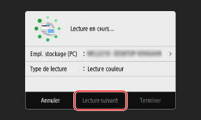 Pour continuer à numériser des originaux, placez-les sur la vitre d'exposition, puis appuyez sur [Lecture suivant].