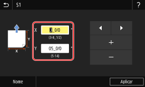 Selecione [X] ou [Y], e digite o comprimento de cada lado usando [+] e [-], com