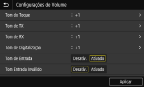 ) no painel de controle e pressionar [Outras Conf. Vol.], a tela [Configurações de Volume] é exibida.