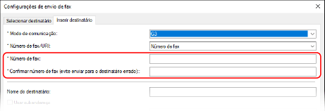 Na guia [Inserir destinatário], insira um número de fax. Quando [Confirmar número de fax (evite enviar para o destinatário errado)] puder ser inserido, insira o mesmo número de fax.