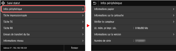 Lorsque vous cliquez sur un nom d'élément ou un bouton, l'élément peut être sélectionné. L'écran sélectionné s'affiche, ou la fonction sélectionnée est exécutée.