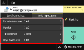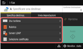 Se la destinazione per l'invio è limitata per via delle impostazioni di autenticazione della funzione Invio, non è consentito specificare un'altra destinazione. Per dettagli, contattare l'amministratore.