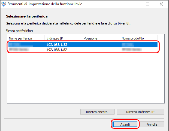 Da [Elenco periferiche], selezionare la macchina e fare clic su [Avanti].