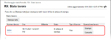 Facendo clic su [Stampa tutto], tutti i fax salvati nella memoria vengono stampati.