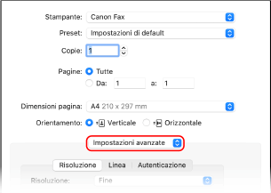 2 | Dal menu a comparsa delle opzioni di stampa, selezionare [Impostazioni avanzate]. Se non vengono visualizzate opzioni di stampa, fare clic su [Mostra dettagli] in fondo alla schermata. |