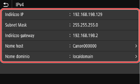 È possibile visualizzare l'indirizzo IP impostato sulla macchina, come l'indirizzo IPv4 e l'indirizzo IPv6.