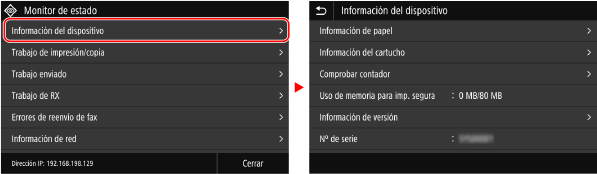 Si toca un nombre de elemento o botón, puede seleccionar el elemento. Aparece la pantalla seleccionada o se realiza la función seleccionada.