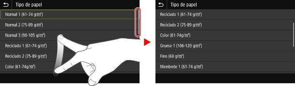 Mueva el dedo mientras toca la pantalla y suéltelo en la posición que desee. Puede desplazarse por listas y mover el área que está tocando hasta la posición que desee.