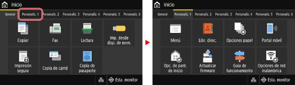 Toque la pantalla y desplace el dedo sobre ella. La pantalla se mueve en la dirección en la que mueve el dedo. Por ejemplo, la pantalla [Inicio] se mueve hasta la pestaña que hay en la dirección en que desplaza el dedo.