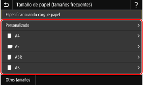 Pulse [Otros tamaños] y seleccione el tamaño de papel en la lista que aparece.