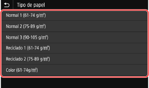 Seleccione el tipo de papel que desea registrar.