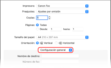 En el menú emergente de opciones de impresión, seleccione [Configuración general].
