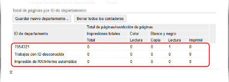 En el ID de departamento cuyo recuento desee reiniciar, haga clic en [Borrar contador]