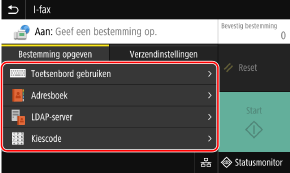 Als de bestemming bij het verzenden onderhevig is aan beperkingen als gevolg van de Functie Verificatie-instellingen voor Verzenden, kunt u geen andere bestemming opgeven. Voor details neemt u contact op met de beheerder.