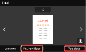 Als u een bepaalde pagina niet wilt verzenden, ga dan naar die pagina en druk op [Pag. verwijderen].