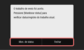 Verificar o estado de envio e armazenamento e o registo dos dados digitalizadosPremir [Fechar] apresenta o ecrã de digitalização.