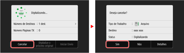 Siga as instruções apresentadas no ecrã para cancelar uma operação de digitalização.