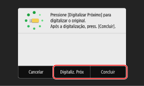 Para continuar a digitalizar originais, coloque-os no vidro de exposição e prima [Digitaliz. Próx].