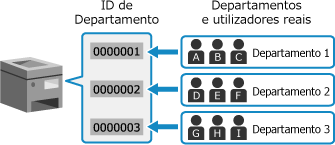 A gestão de ID de departamento é uma função para gerir utilizadores e grupos ao atribuir um ID de departamento a cada utilizador ou grupo.