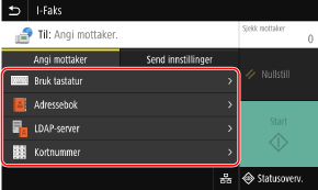 Hvis mottakeren ved sending er begrenset på grunn av godkjenningsinnstillingene for send-funksjonen, kan du ikke angi en annen mottaker. Kontakt administrator hvis du trenger mer informasjon.