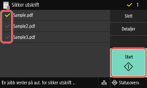 Merk av i boksen for de sikrede dataene som skal skrives ut og trykk på [Start].