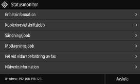 ] på kontrollpanelen. Enligt standardinställningen visas skärmen [Hem] när strömmen har slagits på och omedelbart efter att startskärmen stängs samt direkt efter inloggning. Skärmen [Hem]