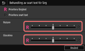 Gör justeringen med prioritet på att återge antingen färgtext eller svart text i [Matare] eller [Glasskiva].