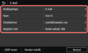 6 | Vælg den bruger, der skal registreres i adressekartoteket. Navnet og destinationen indtastes på registreringsskærmen for adressekartoteket. |