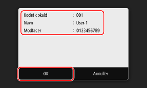 På fanen [Angiv Modtager] på scannings- eller faxskærmen skal du trykke på [Kodet opkald].