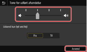 Træk skydefunktionen til venstre eller højre for at justere lydstyrken, og tryk på [Anvend].