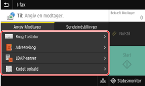 På fanen [Angiv Modtager] skal du angive destinationen.