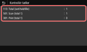 Du kan få vist en tæller, der viser det samlede antal sider, der er blevet kopieret og udskrevet til dato.