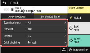 Du kan konfigurere e-mailindstillingerne, når du sender scannede data via e-mail eller I-Fax.