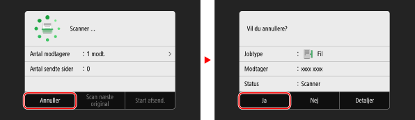 Følg instruktionerne på skærmen, hvis du vil annullere en scanningshandling.