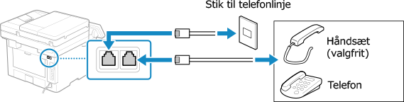 Hvis du tilslutter en telefon med faxfunktion, skal du deaktivere telefonens indstilling for automatisk modtagelse af fax.