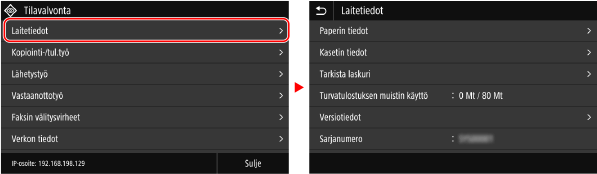 Jos napautat kohteen nimeä tai painiketta, kohde voidaan valita. Valittu näyttö tulee esiin, tai valittu toiminto suoritetaan.
