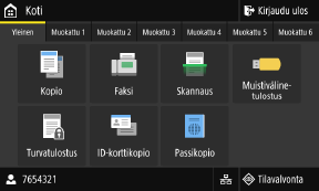![]() | [Kotinäytön asetukset] Lisää pikavalintapainikkeita [Koti]-näyttöön ja järjestä painikkeet uudelleen. [Koti]-näytön mukauttaminen | |