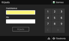 Jos järjestelmävalvojan tunnus on asetettu, kirjautumisnäyttö näytetään toiminnoille, joihin tarvitaan järjestelmänvalvojan oikeudet. Kirjaudu syöttämällä järjestelmävalvojan tunnus ja PIN-koodi.