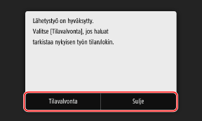 Jos haluat tarkastella lähetyksen tilaa ja lokia, paina [Tilavalvonta].