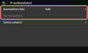 1 | Paina [Automaattinen haku]. [IP-osoiteasetukset (Automaattinen haku)] -näyttö tulee esiin. |