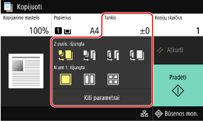 Paspauskite [Kiti parametrai] kopijavimo ekrane