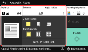 Rodomas atminties laikmenos spausdinimo parametrų ekranas.
