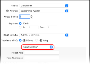 Yazdırma seçenekleri açılır menüsünden [Genel Ayarlar] öğesini seçin.