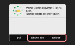 [Evet] öğelerine basın. Taramayı İptal Etme