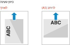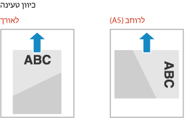 כברירת מחדל, הכיוון שבו יש לטעון את הנייר וצד ההדפסה משתנים בהתאם אם ברצונך להדפיס על אחד הצדדים או על שני הצדדים.