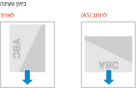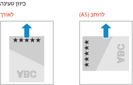 בעת טעינת נייר עם לוגו, שימו לב לכיוון ולאיזה צד פונה כלפי מעלה.