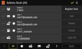 برای نمایش همه مقصدهای ثبتشده در دفترچه آدرس، [All] را انتخاب کنید.