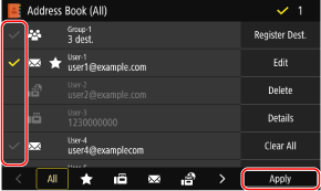 کادرهای انتخاب مقصدهای مورد نظر را برای تعیین کردن علامت بزنید و [Apply] را فشار دهید.