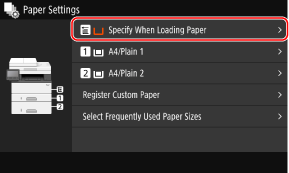 [Specify When Loading Paper] را فشار دهید. نیازی نیست مرحله 4 را انجام دهید.